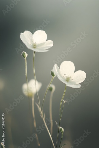 © KerXing, Obraz premium Delicate White Flowers in Soft Light