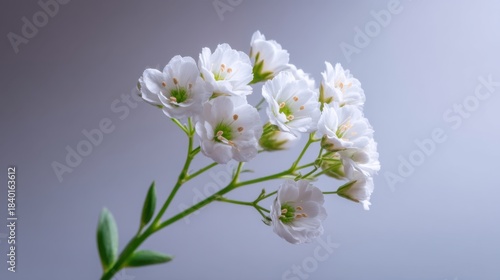 © buraratn, Obraz premium Delicate White Flowers on a Soft Gray Background Emphasizing Natural Beauty and Serenity in Floral Design, Perfect for Backgrounds and Arrangements