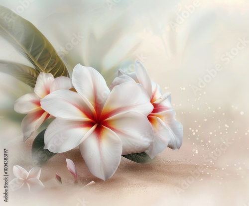 Naklejka premium Delicate White Flowers With Orange Highlights on Soft Abstract Background