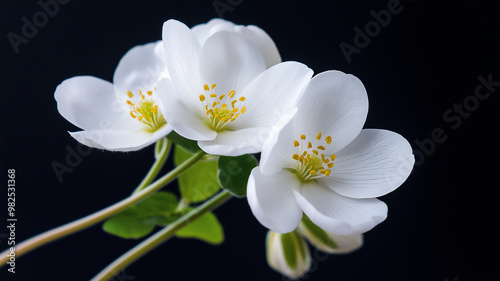 © wuttichai1983, Obraz premium Delicate white flowers with yellow centers, captured against a dark background, showcasing elegance and natural beauty.
