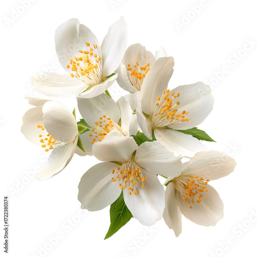 © HSINA, Obraz premium Delicate White Jasmine Flowers Blooming Fragrant Sweet Scented Blossoms Isolated On Transparent Background.