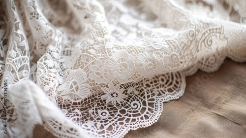 Obraz premium Delicate White Lace Fabric Texture - Close Up