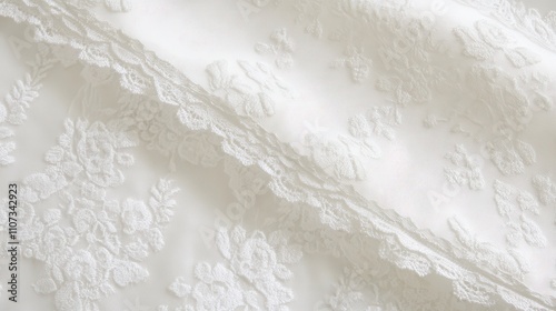 © AI_Nusantara, Obraz premium Delicate white lace fabric with floral embroidery.