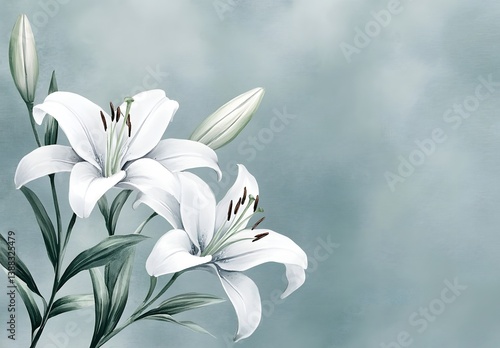 Fototapeta premium Delicate white lilies on a soft backdrop