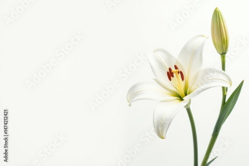 © jiratip, Fototapeta premium Delicate white lily, watercolor style, minimalist, white background , art, lily