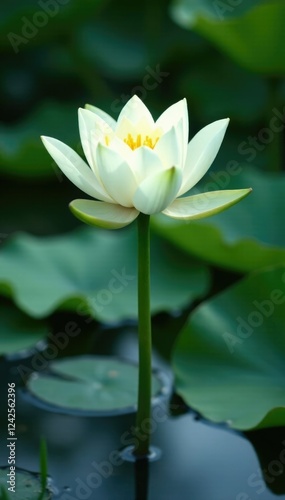 Obraz premium Delicate white lotus bloom rises from serene waters, nature, blooming, water lily