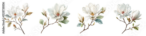 © Naruedetch, Fototapeta premium Delicate white magnolia flowers blooming on branches