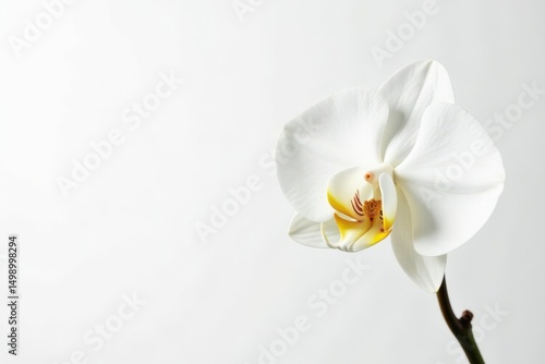 Naklejka premium Delicate white orchid blossom against pure white backdrop, macro, design, soft