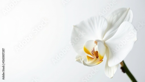 Naklejka premium Delicate white orchid blossom against pure white backdrop, plant, simple, petal