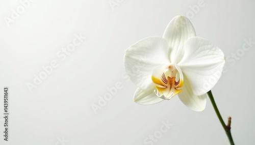 © Yanisa, Obraz premium Delicate white orchid blossom against pure white backdrop, wildlife, soft