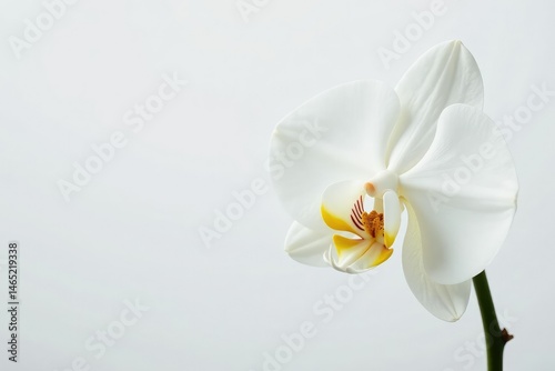 Obraz premium Delicate white orchid blossom on pure white background, natural, white flower