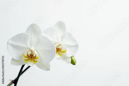 © สิริวุฒิ นาคโคตร, Obraz premium Delicate white orchid blossom on pure white background, stock, closeup