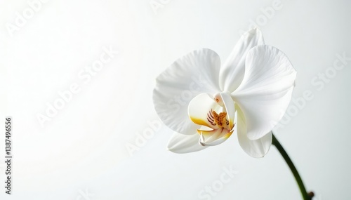 Fototapeta premium Delicate white orchid blossom, pristine petals against pure white background, image, beauty