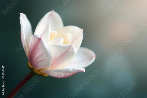 Fototapeta premium delicate white petals unfolding on a soft pink stem, soft, nature