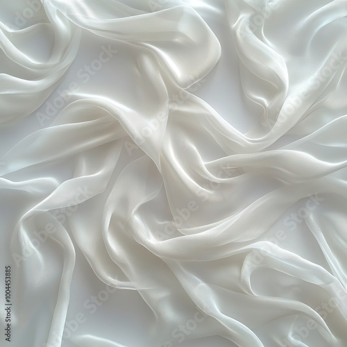 Fototapeta premium Delicate white silk fabric draped elegantly on white background, creating a...