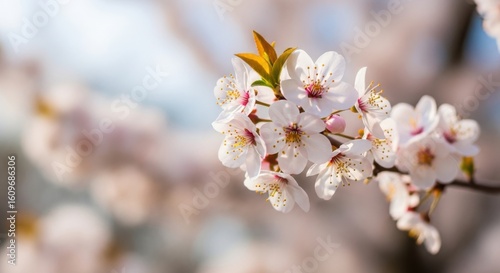 Fototapeta premium Delicate White Spring Blossoms on a Branch with Soft Bokeh Background