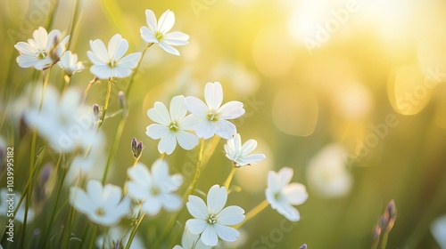 Fototapeta premium Delicate wildflowers illuminated by soft light