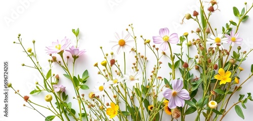 Fototapeta premium Delicate wildflowers, lush greenery, and elegant sprigs, isolated on pure...