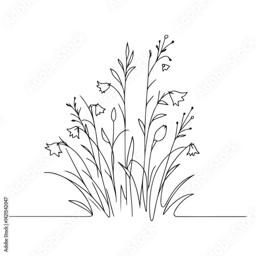 © Creative Image , Naklejka premium Delicate Wildflowers One Line Drawing Illustrating Nature and Simplicity