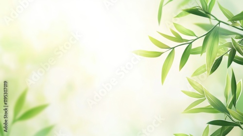 Fototapeta premium Delicate willow branches in fresh green, soft morning light, serene and...
