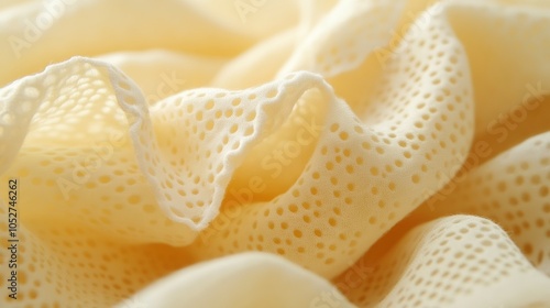 Fototapeta premium Delicate yellow lace fabric with intricate patterns and soft folds, AI