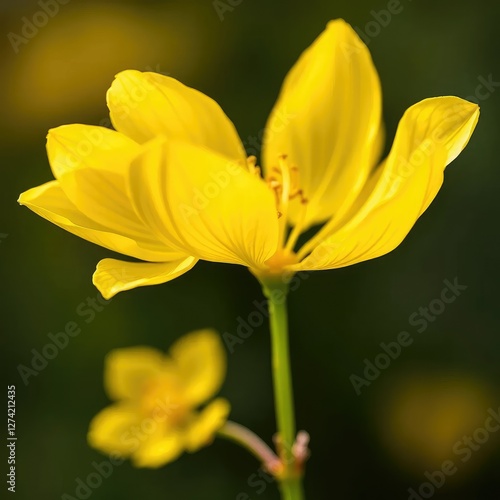 Naklejka premium Delicate yellow petals unfurl on a slender stem, bloom, delicate flowers