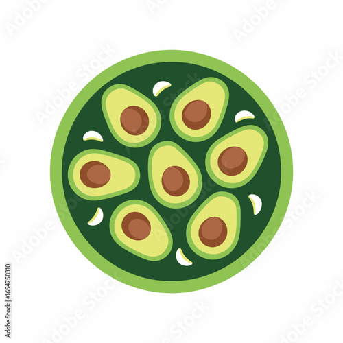 Obraz premium Delicious Avocado Salad with White Garlic Illustration on Green Plate Healthy...