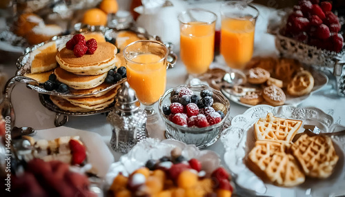 © Marvellino, Naklejka premium Delicious breakfast food table setting
