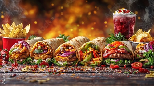 Naklejka premium Delicious Burritos and a refreshing drink, perfect for a satisfying meal!