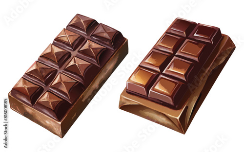 © Designhut1983, Obraz premium Delicious chocolate bars collection set with dripping vector set illustration clipart isolated on white background