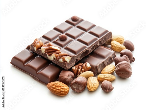 © isolatedgenerativeai, Obraz premium Delicious chocolate bars with nuts