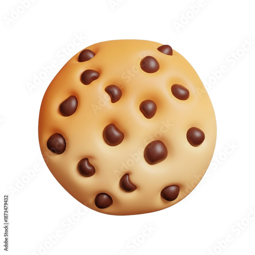 © emaris, Fototapeta premium Delicious chocolate chip cookie: a 3d rendered delight with a tan dough and dark brown chocolate morsels