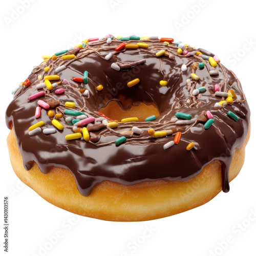 Fototapeta premium Delicious chocolate donut topped with colorful sprinkles and soft texture isolated on transparency background