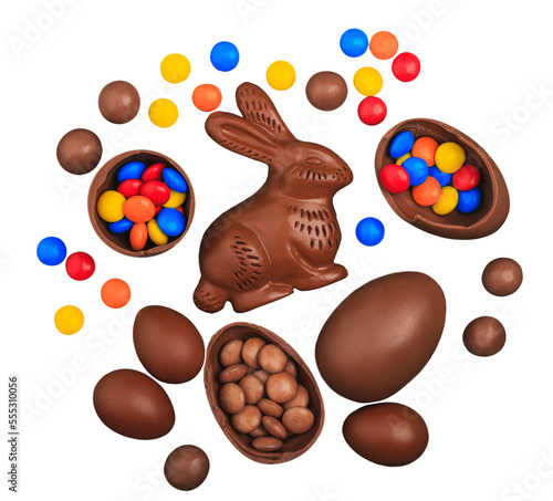 Fototapeta premium Delicious chocolate easter eggs and bunny