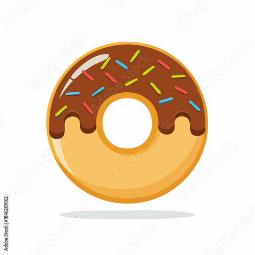 Fototapeta premium Delicious Chocolate Frosted Donut with Colorful Sprinkles - A Sweet Treat Illustration