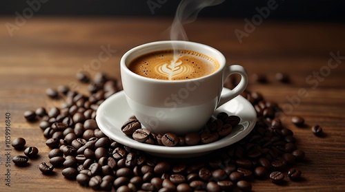© Halima, Fototapeta premium Delicious coffee beans and cup