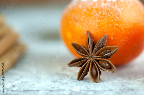 © I, Fototapeta premium delicious fresh muffins with flour on a wooden table