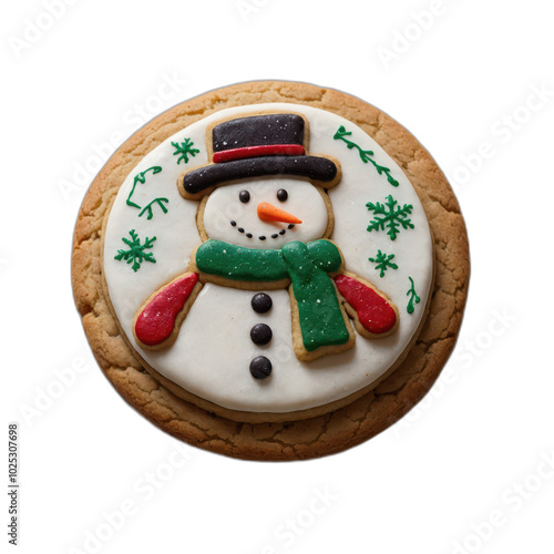 Fototapeta premium Delicious holiday cookie featuring a cheerful snowman design on a festive...