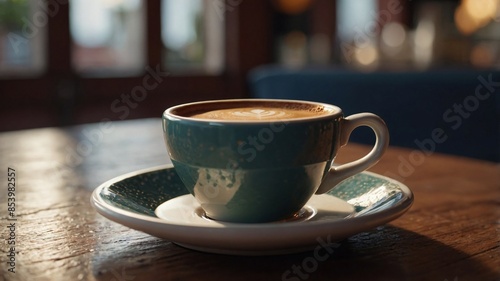 © 3DStock, Obraz premium Delicious looking espresso in a cozy italian restaurant. Generative AI.
