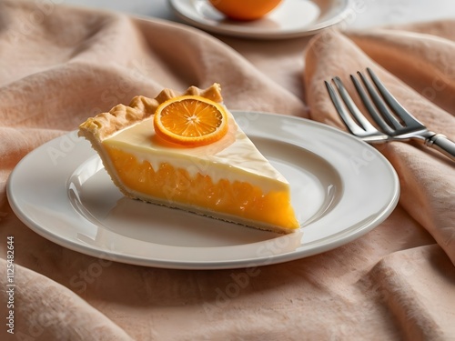 Fototapeta premium Delicious Orange Cream Pie Slice on Plate