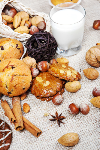 Fototapeta premium Delicious pastry on hessian cloth