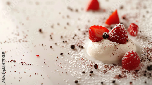 © yevhen89, Fototapeta premium Delicious sweet dessert fresh strawberries sugar. Light background copy space