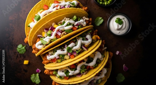 Fototapeta premium Delicious Tacos with Creamy Sauce and Vegetables.