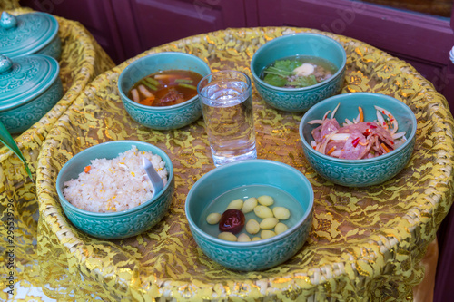 © kanpisut, Fototapeta premium Delicious thai food set served on bamboo plate. lunch and or dinner set of culture thai food. present for traveler and tourist.