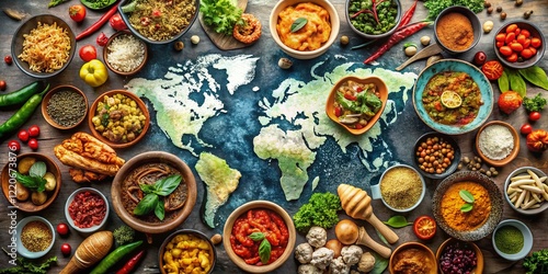 Fototapeta premium Delicious World Cuisine Map: A Culinary Journey Through Global Flavors