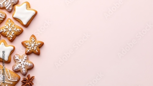 Fototapeta premium Deliciously decorated holiday cookies on a soft pastel background