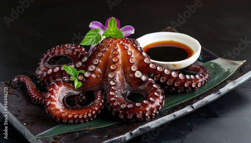 Fototapeta premium Deliciously Tangy: A Guide to Boiled Webfoot Octopus Dish with Dipping Sauce...
