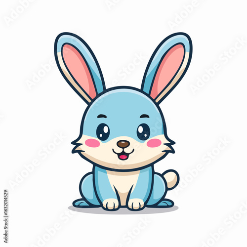 Obraz premium Delightful Blue Cartoon Rabbit Character Illustration with Adorable Features and Simple Design