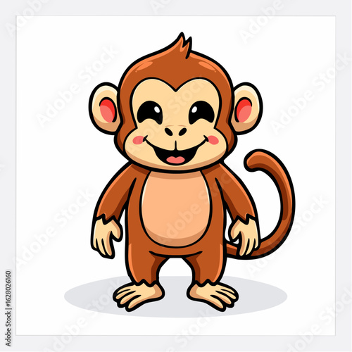 Fototapeta premium Delightful Cartoon Monkey Character Standing with a Friendly Smile on a White...