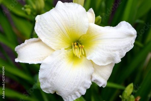 Fototapeta premium Delightful flowering white daylily leaves unforgettable impressions.